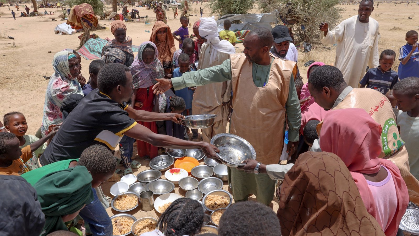 Volunteers from emergency response rooms in Sudan distribute food to families displaced by the country’s civil war.